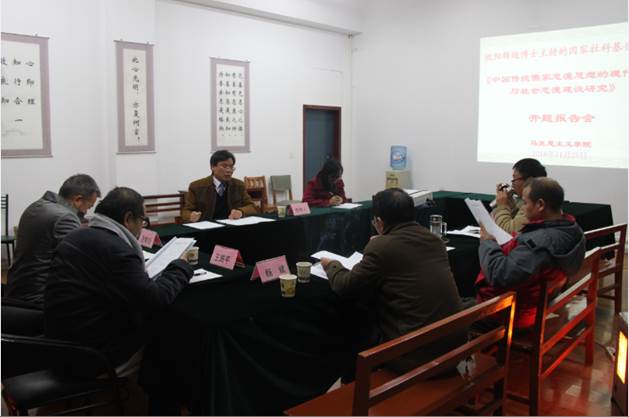 2016年11月25日,在贵州师范大学宝山校区太阳成集团tyc151cc会议室,举行了由我院欧阳辉纯博士主持的2016年国家社科基金项目《中国传统儒家忠德思想的现代转化与社会忠德建设研究》开题报告会。开题报告专家委员会由贵阳学院王晓昕教授、贵州省社会科学院王路平教授、贵州师范大学社科处杨斌教授、太阳成集团tyc151cc欧阳恩良教授和汪勇教授五位专家组成,开题报告由欧阳恩良教授主持,报告会秘书是鄢英副教授。