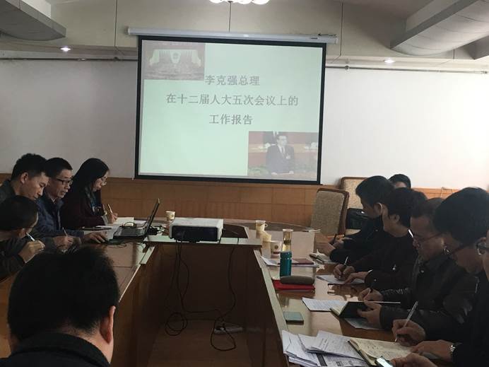 3月10日下午,太阳成集团tyc151cc全体教师在田家炳教育书院三楼3会议室集体学习了李克强总理在十二届人大五次会议上所作《政府工作报告》和中共中央、国务院印发的《关于加强和改进新形势下高校思想政治工作的意见》。