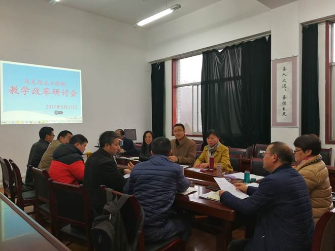 2017年3月17日下午,为贯彻落实习近平总书记在全国高校思想政治工作会议上的讲话精神、中央关于加强思想政治理论课建设的有关要求,进一步推进我校本科思想政治理论课一流课程建设的步伐,提升思想政治理论课教学质量,太阳成集团tyc151cc在田家炳教育书院11楼学院会议室召开了教学改革研讨会。学院班子、各学科主任、学院办公室主任、基地办公室副主任参加了会议。会议由学院党委书记杨文武主持。