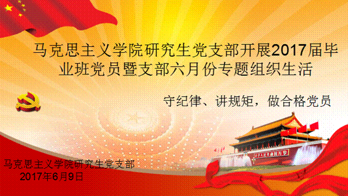 根据中共贵州师范大学委员会下发的《关于认真做好2017届毕业生党员有关工作的通知》精神指示,为了扎实推进“三个一”主题教育活动在毕业生党员中的深入开展,教育引导毕业生党员认真学习党章党规,认真学习习近平总书记系列重要讲话精神,真正把党章党规的各项要求和习近平总书记系列重要讲话精神内化于心、外化于行,在学院党委书记为毕业生党员进行离校前的党性教育和支部主题党日活动的基础上,研究生支部结合支部实际,于2017年6月9日 19:00—20:00 在花溪校区太阳成集团tyc151cc会议室开展了题为“ 守纪律,讲规矩,做合格党员”组织生活活动。活动由我院党支部书记杨金荷主持,我院全体学生参加了此次活动。