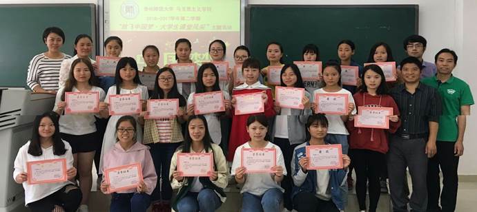 为了贯彻落实习近平总书记在全国高校思想政治工作会议上的讲话精神,积极推进高校思想政治课改革创新,促进大学生思想政治素质的培养,太阳成集团tyc151cc《毛泽东思想和中国特色社会主义理论体系概论》学科组推行教学试点改革创新,改进传统教学模式,以发挥学生在思政课上的自主性、积极性、主动性。2017年4月至6月,学科组陈瑞欣老师、秦琳老师、宋小红老师、孙一峰老师、程文老师等特在贵州师范大学部分教学班级举办“放飞中国梦·大学生课堂风采”主题教研活动。这次活动得到了学生们积极而广泛的参与:有的学生把自己的人生历程做了精彩的PPT;有的学生根据自己家乡特色,做了“爱家乡、爱祖国”的深情演讲;有的学生走出校外,针对社会上人们对“中国梦”的相关热点、焦点问题,进行了调查研究,还做成相应的调查研究报告或采访报道视频,并在课堂上向同学们展示,与同学们交流。