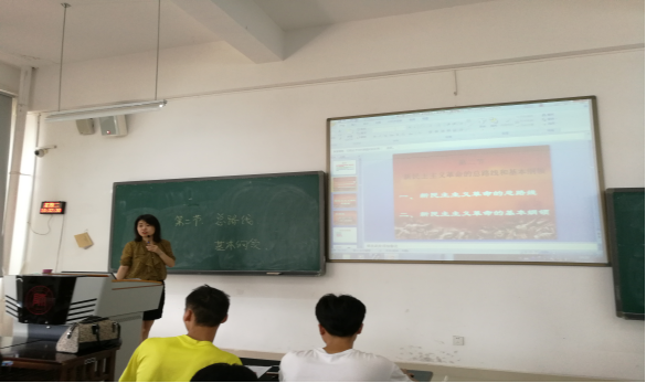 2017年9月19日,毛中特教研室教师牟蕾博士在贵州师范大学花溪校区GJ3217教室上了一次公开课,讲授内容为:《新民主主义革命的总路线和基本纲领》。毛中特教研室的老师和学院其他教研室的老师参加了听课、评课。牟老师深入浅出地讲解了新民主主义革命的总路线,包括革命的对象、动力、领导、性质与前途,以及新民主主义革命的基本纲领。牟老师整节课逻辑联系紧密,环环相扣,引导学生们思考无产阶级革命领导权是如何取得的,革命的性质和前途等问题。牟老师讲课内容丰富多彩,语言幽默风趣,整个课堂气氛热烈、笑声阵阵。