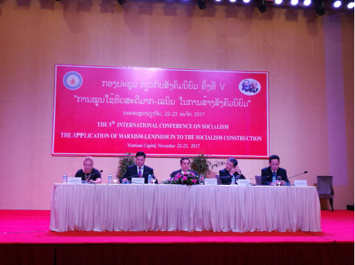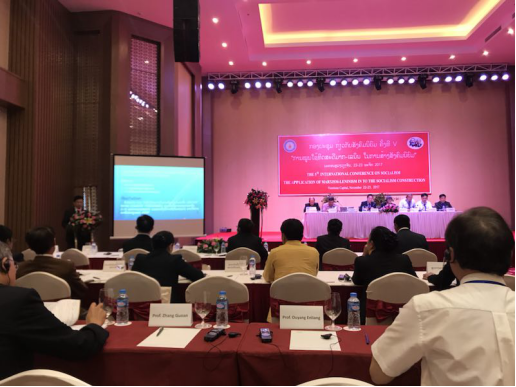 2017年11月22日至24日,第五届社会主义国际论坛在老挝首都万象召开,来自中国、老挝、越南、古巴、朝鲜等5个社会主义国家的专家学者100余人参会。中国代表团团长樊建新教授、老挝社会科学院院长苏孔森·赛雅烈教授、越南代表团团长范文德教授、古巴共和国驻老挝大使玛利亚·德拉孔塞晋西翁·穆纽兹·普利耶多、朝鲜民主主义人民共和国驻老挝大使李常根分别在开幕式上致辞。应老挝社会科学院院长赛雅烈教授的邀请,我院欧阳恩良教授参加了此次国际论坛并作大会主题报告。