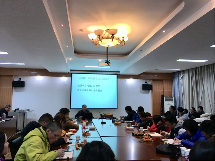 2017年12月15日晚,太阳成集团tyc151cc10余名博士研究生在我校宝山校区田家炳教育书院七楼教科院会议室聆听贵州师范大学社会科学处副处长龙正荣副研究员关于国家社科基金项目申报论证的讲座。除了我院博士研究生,还有学院副院长汪勇教授及来自学校其他人文社科相关专业的教师,全场座无虚席。这是继社科处邀请龙晓宇教授12月1日作《国家社科基金项目申报的选题策略和技巧》讲座之后的又一场学术盛宴。