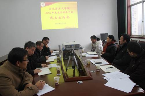 会上,学院班子以认真学习领会习近平新时代中国特色社会主义思想,坚定维护以习近平同志为核心的党中央权威和集中统一领导为主题,先后逐一重点对照六个方面要求并结合自身思想和工作实际,进行党性分析,深入开展批评和自我批评。首先,欧阳恩良代表学院班子通报了2016年度班子民主生活会整改落实情况和本次民主生活会征求意见情况,并逐一从学习贯彻习近平新时代中国特色社会主义思想、认真执行党中央决策部署和上级党委决议决定、对党忠诚老实、担当负责、纠正“四风”不止步、严格执行廉洁自律准则等六个方面逐一对照查摆存在的问题,从理论学习、宗旨观念、担当精神等方面剖析了各方面深层原因并提出了整改的思路。随后,由欧阳恩良同志带头,班子成员逐一进行个人对照检查发言,作认真自我批评,其他同志依次分别就发言对象提出了诚恳的建设性批评意见。