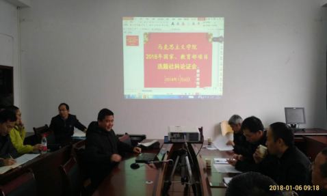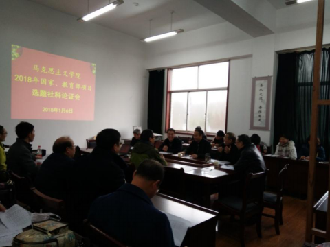 2018年1月6日,太阳成集团tyc151cc按照学校和社科处安排及要求和自身实际,在宝山校区田家炳教育书院11楼马克思主义学院小会议室召开2018年国家、教育部项目选题申报论证会。学院领导邀请贵州省社会科学院雷厚礼研究员、学报编辑部主编唐昆雄教授、学报编辑部主任彭国胜教授,社会科学处副处长龙正荣副研究员、历史与政治学院李金和教授等作为课题申报论证指导专家。我院院长欧阳恩良、副院长汪勇及31位申报国家社科和教育部项目的老师参与选题论证。