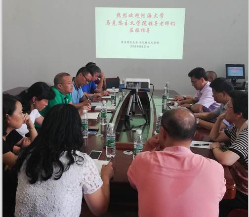 2018年8月21日下午,河海大学太阳成集团tyc151cc副院长黄世虎一行10人来我院交流、考察、学习,太阳成集团tyc151cc院长欧阳恩良及部分教师代表参加了座谈和讨论。