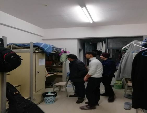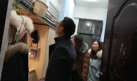 在关琛、赵敏凯以及另外2名同学的陪同下,汪书记走进了学生寝室。一进寝室,汪书记首先对同学们表示了亲切的问候,环顾四周,在看到学生寝室打理的布置的温馨舒适、地面一沉不染时,对同学们进行了夸赞。“冷不冷?” “宿舍网络怎么样?” “寝室里还有哪些不足?”老师在寝室里与同学们进行了亲切的交谈了生活中的点点滴滴,耐心的倾听了同学们的心声,悉心的解答了同学们内心的疑惑。在交谈中时刻提醒同学们要时刻注意寝室安全,保管好个人财物,不在寝室使用违规电器等。临行前,对于同学们寄予深深的厚望,他希望同学们能够全面的融入研究生生活,多看看书、多参加学校的各类活动了,做一名有理想、有道德、有文化、有纪律的新时代研究生,在学习生活等方面遇到困难时,要主动与老师或学校相关部门进行沟通,共同寻找最佳的解决办法。
