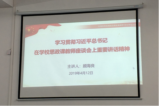 2019年4月12日下午,为深入贯彻落实习近平总书记3月18日在学校思想政治理论课教师座谈会上的重要讲话精神,按照省教育厅相关要求,我院全体师生集中在田家炳11楼学院会议室参加教育部开展的全国高校思政课教师“周末理论大讲堂”线上培训活动。开班仪式暨第一讲收看活动由院长欧阳恩良主持。