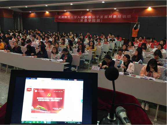 学院党委书记汪勇教授受学校党校和求是学院邀请于2019年4月24日、28日、5月6日晚分别在花溪校区大礼堂、宝山校区田家炳三楼多功能厅、求是学院给学校800余名(其中花溪559名、宝山校区100名)入党积极分子发展对象作“深入学习贯彻习近平新时代中国特色社会主义思想和党的十九大精神 为实现奋斗目标作出新的更加贡献”的专题报告人。汪勇教授结合青年实际,首先对4月19日习近平在中共中央政治局第十四次集体学习时强调加强对五四运动和五四精神的研究 激励广大青年为民族复兴不懈奋斗的讲话和4月23日人民海军70周年大阅兵等给在座人员作导入介绍,然后紧紧围绕习近平新时代中国特色社会主义思想和党的十九大精神与青年等主题展开,分别结合改革开放四十年来我国巨大的发展变化和大学生的实际等,就习近平新时代中国特色社会主义思想和党的十九大报告的主要是内容及其对青年的关注,以及作为青年重要组成部分的大学生在实现伟大复兴中国梦中的地位和作用、大学生应该如何面对现实和努力拼搏奋斗等作了阐述。随后,汪勇教授又在田家炳多功能厅和求是学院等先后给入党积极作讲座。讲座紧密结合学生实际,深入浅出,对入党积极分子发展对象积极向上产生了重要而积极的影响。