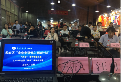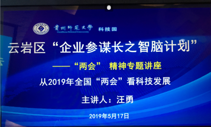 学院汪勇教授于2019年5月17日(星期五)上午9:30在贵州师范大学宝山校区思雅众创空间党员活动室给各社区从事科技工作的党员干部、辖区科技型企业党组织党员代表、有志创业的大学生、云岩区科学技术局党支部党员干部等60余人作主题为《从2019年全国“两会”看我国科技发展》的讲座。汪勇教授的讲座理论联系实际上并结合当前中美贸易战的情况等分别运用典型案例详实和数据先介绍2019年两会及其报告的主要内容,然后就十八大以来国家高度重视科技的创新和两会有关科技发展的具体举措等逐一展开。讲座既有政治高度,也有理论深度,同时还紧接地气,使听者对我国两会今年有关科技工作的相关内容及我国科技发展面临的境遇等有了较为清晰的了解和认识。