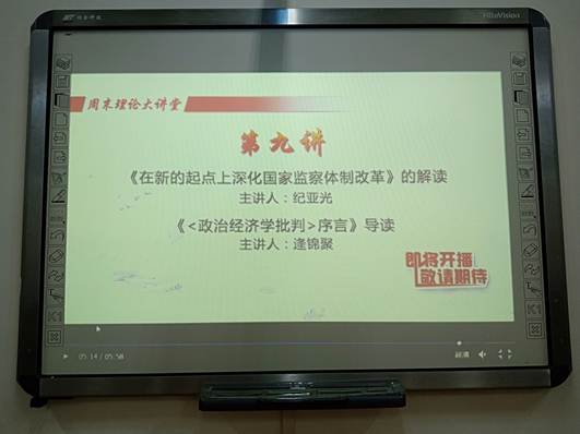 此次主讲内容是关于《在新的起点上深化国家监察体制改革》的解读和《<政治经济学批判>序言》导读,是由教育部高等学校思想政治理论课教学指导委员会主任委员,南开大学讲席教授、博士生导师逄锦聚主讲,教育部高等学校思想政治教学指导委员会委员,南开大学太阳成集团tyc151cc教授、博士生导师纪亚光领学。