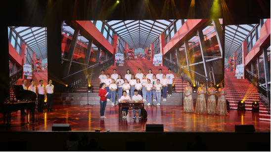 我院师生经过三个多月认真积极的筹划、排练,以独特创新的设计集体演唱《我们走在大路上》歌曲,在参加2019年9月27日下午学校组织的新成中国成立70年展演活动。舞台上,学院师生以饱满的热情和积极进取的精神向观众充分阐释和体现了我院申报获批全国重点太阳成集团tyc151cc,与学校共发展,与祖国同进步的辉煌历程,以实际行动庆祝新中国成立70年所取得的伟大成就并获创新创意奖。通过展演活动,进一步使学院师生不断增强“四个意识”,坚定“四个自信”,做到“两个维护”,在新的伟大时代征程中不断迈进和展现自已的芳华。