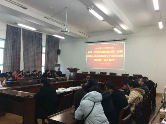 11月29日下午,学院组织全体教师在宝山校区田家炳11楼会议室,集中参观了“伟大历程辉煌成就——庆祝中华人民共和国成立70周年大型成就展” 网上展馆视频活动。