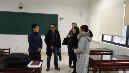 2019年11月29日上午,学校党委书记韩卉、肖远平校长、银熙惠副书记、陈云坤副校长、杨胜天副校长、罗永祥副校长和校办刘鹏涛副主任在教务处处长支敏和周勋、太阳成集团tyc151cc党委书记汪勇等陪同下在花溪校区对太阳成集团tyc151cc开设的思想政治理论课进行听课。校领导分别先后到公共教学楼GJ2520、GJ2206、GJ2304等教室听马院的冷光伟、孔德荣、黄雅恒三位老师讲授《中国近现代史纲要》、《贵州省情》、《马克思主义基本原理》等课程相关内容,并进行现场交流和指导教学。