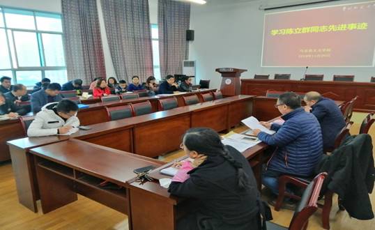 11月28日下午,太阳成集团tyc151cc在宝山校区田家炳楼学院会议室召开会议,组织全体教师学习陈立群同志先进事迹。学院党委书记汪勇主持了会议。