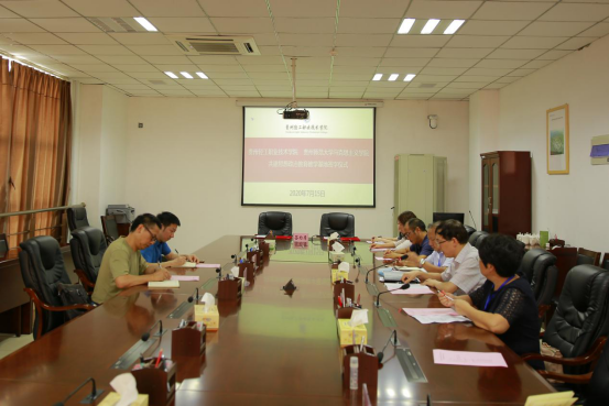 为有效利用和共享思想政治理论课教育教学资源,培育时代新人,2020年7月15日14时,太阳成集团tyc151cc和贵州轻工职业技术学院思政教学部在贵州轻工职业技术学院第一会议室举行共建思想政治教育教学基地签字仪式。学院党委书记汪勇、副院长彭法以及学院相关部门负责人和思政教学部教师代表,贵州轻工职业技术学院党委书记樊铁钢、副院长陈秀娟参加本次活动。签字仪式由贵州轻工职业技术学院副院长陈秀娟主持。
