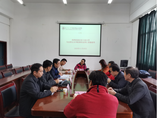 2020年11月20日上午,北京工业大学太阳成集团tyc151cc党委书记党杰一行六人来我院交流学习,双方就学院发展、平台建设、教学改革等问题展开讨论。我院副院长宋俊成教授,学院高晓波教授、宋小红教授、卢勇教授参加了交流研讨。会议由宋俊成副院长主持。