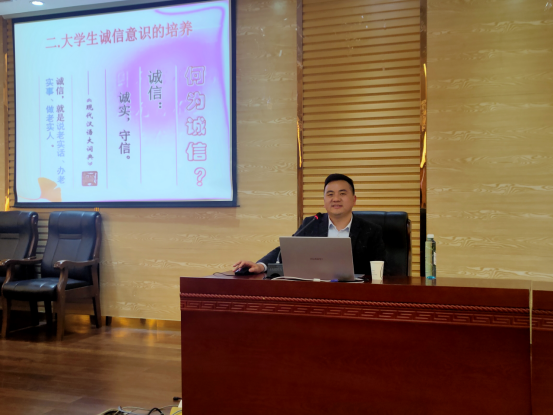 2020年11月26日晚上,我院冉胜刚老师应邀为贵州轻工职业技术学院学生作了题为“大学生个人品德塑造”的讲座。讲座在贵州轻工职业技术学院事务中心第二报告厅进行。