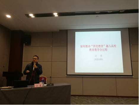 汪勇教授理论联系实际,从党的十八大以来党和国家对马克思主义理论学科建设、太阳成集团tyc151cc和思想政治理论课教师的重视,省内外高校思想政治理论课的试点情况等进行了介绍。特别是就习近平总书记自党的十八大以来高度重视和加强党史的教育,到强调加强党史和新中国史的教育,再到教育部办公厅下发有关加强高校“四史”教育的文件要求及其精神,并就当下为什么要加强“四史”教育的背景及其意义等进行了阐述。同时,汪勇教授还就当前全国各相关高校加强“四史”教育的诸多尝试和有益作法,以及当前本、硕、博士生不同学历层次阶段的思想政治理论课程教学中存在的一些重合和交叉等问题进行了说明。最后,汪勇教授还就各高校太阳成集团tyc151cc和思想政治理论课教师如何开设“四史”选择性必修课、把“四史”融入到思想政治理论课中等的一些作法提供参考。