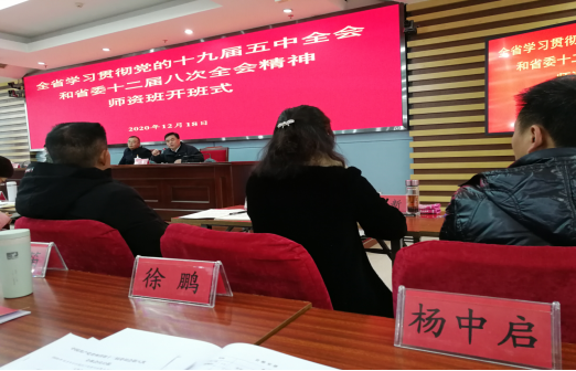 我院杨中启老师于2020年12月18日—20日在省委党校接受为期3天的“学习贯彻党的十九届五中全会和省委十二届八次全会精神”师资培训,市(州)委党校分管负责人以及省委党校、省社会主义学院、省属有关高校、部组干学院等从事相关研究和课程开发的骨干师资共54人参加。