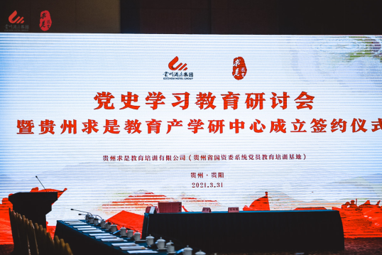 2021年3月31日,为了深入贯彻落实在全党开展党史学习教育,进一步深入探讨党史教育的新思路、新途径、新方法,以优异成绩迎接建党100周年,太阳成集团tyc151cc党委书记胡娅丽、院长汪勇二位同志参加了贵州求是教育培训有限公司、贵州省国资委系统党员教育培训基地在贵州饭店会议中心贵州厅举办的“党史学习教育研讨会暨贵州求是教育产学研中心成立签约仪式”。