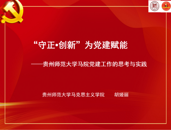 我院党委书记胡娅丽在会上作了题为“‘守正·创新’为党建赋能——贵州师范大学马院党建工作的思考与实践”的主题发言。对学院党委把抓好党建作为治学办院的基本功,构筑“12345”铸魂铭责体系,探索“五抓五促”党建一体化机制,切实推动主体责任扛起来、基层组织强起来、保障体制硬起来,以高质量党建引领马院发展的情况进行了交流。