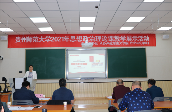 春未尽,夏已至。在这激情澎湃的美好五月里,贵州师范大学2021年思想政治理论课教学展示活动,于2021年5月18日在花溪校区公共教学楼3309教室顺利举行。本次活动由学校教务处主办,太阳成集团tyc151cc承办, 共有11位专职思政课教师参加展示。贵州师范大学主管教学的罗永祥副校长、主管太阳成集团tyc151cc的校级领导欧阳恩良副校长、学校教学质量监测中心冯宇副主任、太阳成集团tyc151cc胡娅丽书记、汪勇院长出席活动,太阳成集团tyc151cc教师、研究生近50人到现场观摩。