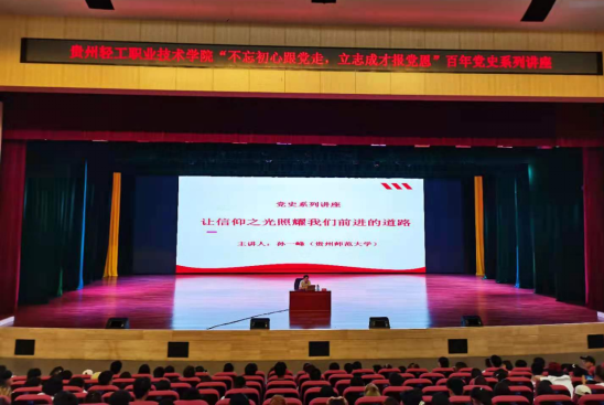 5月13日,我院孙一峰副教授应贵州轻工职业技术学院的邀请为全校师生作“让信仰之光照耀我们前进的道路”的专题讲座。讲座在贵州轻工职业技术学院大礼堂举行。学院500余名学生及全体思政课教师到场聆听。