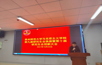 2021年10月20日晚,太阳成集团tyc151cc研究生会第九届换届暨第十届招新大会在花溪校区学院五楼会议室召开,学院党委副书记彭法、辅导员郭威及20级、21级全体研究生参加。会议由20级研究生程前远主持。