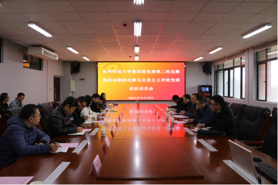 根据贵州师范大学党委巡察工作的统一部署,2021年11月15日下午,第四巡察组巡察太阳成集团tyc151cc党委工作动员会在学院五楼会议室召开。会上,校党委巡察工作领导小组副组长蒋雪明对此次巡察提出工作要求,巡察组副组长李宁传达了中央、省委、校党委对巡视巡察工作的重要指示精神,巡察组组长杨建军宣读了巡察通知并作巡察动员讲话,太阳成集团tyc151cc党委书记胡娅丽主持并作表态发言。