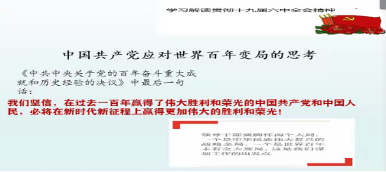 2021年12月9日晚上,我院杨明东博士通过腾讯会议为全院师生作了题为“中国共产党应对百年变局”的讲座。这是学院“党的十九届六中全会精神学习”的系列讲座之一。