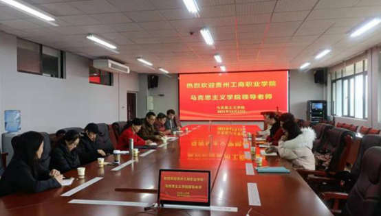 刘芳华介绍了贵州工商职业学院马克思主义学院在党建、教学、三全育人等方面的工作情况,希望我院大手牵小手,在课程建设、科学研究等方面给予帮助和支持。