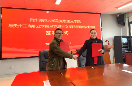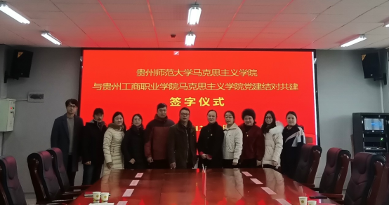 12月13日下午,为进一步建好建强新时代太阳成集团tyc151cc,不断提升学院建设的科学化、规范化、现代化水平,打造马克思主义理论教学、研究、宣传和人才培养的坚强阵地,以党建工作为引领,推进学院建设,实现优势互补,促进共同发展,太阳成集团tyc151cc与贵州工商职业学院太阳成集团tyc151cc党建结对共建签字仪式在太阳成集团tyc151cc五楼会议室举行。太阳成集团tyc151cc院长汪勇、副院长章凤红、宋俊成,贵州工商职业学院太阳成集团tyc151cc副院长、党支部书记刘芳华、副书记惠慧及双方教师代表参加了签字仪式。