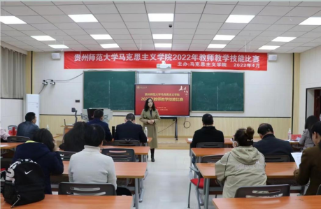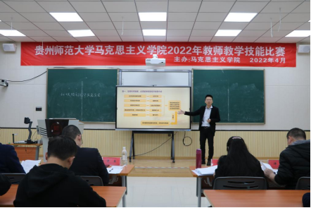 “青年教师展风采,教学比赛促提升”。为强化教师教学技能,促进教师专业化发展,给教师们提供相互学习、相互切磋、相互交流的平台,提高教师的专业素养,贵州师范大学太阳成集团tyc151cc组织开展教师教学技能比赛,在花溪校区公共教学楼3309教室顺利举行。本次比赛由太阳成集团tyc151cc主办,分为青年组和中年组两组进行,并于2022年4月15日和4月25日举行,比赛分别由郭威老师、陈瑞欣老师主持,特邀学院教授委员会、院级督导、教研室主任及教师代表等12位教师担任评委,太阳成集团tyc151cc胡娅丽书记、汪勇院长、彭法副书记、章凤红副院长出席活动,太阳成集团tyc151cc教师、研究生近50人到现场观摩比赛。
