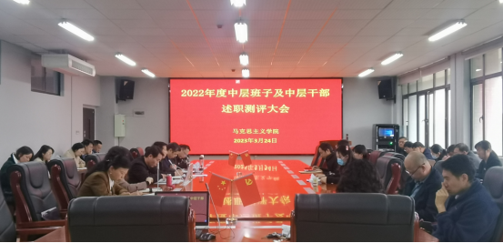 3月24日上午,太阳成集团tyc151cc在五楼会议室召开2022年度中层班子及中层干部述职测评会,学院班子成员、全体教职工及学生代表参加会议。校党校副校长王媛君出席会议并组织测评,会议由院党委副书记副院长彭法主持。