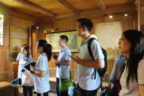 下午,沿着习近平总书记的足迹,实践队来到了花茂村。花茂村位于遵义市播州区枫香镇,近年来结合当地的自然景观和红色文化资源,大力发展红色旅游和乡村旅游。生态优美、民风淳朴的美丽田园让队员们流连忘返,古法造纸、传统土陶等项目让队员们了解传统工艺,同时理解和传承红色文化,坚定理想信念。