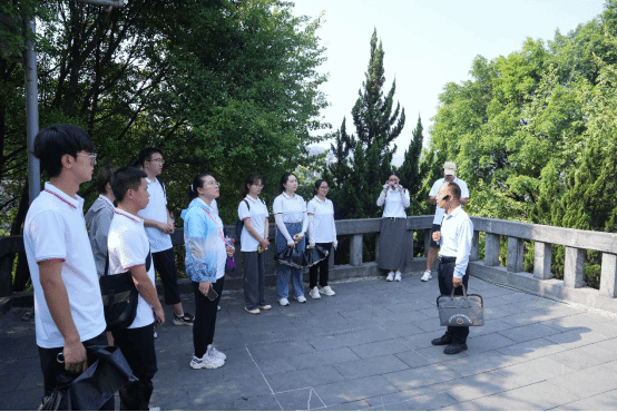 随后,实践队跨越358级台阶来到了遵义红军烈士陵园。到达纪念碑前,大家整齐列队,肃然起敬,向长眠于此的革命先烈默哀并鞠躬。了解了邓萍烈士、龙思泉烈士的故事,更加深刻地理解了他们的伟大精神和无私奉献。实践队不仅缅怀了革命先烈的丰功伟绩,也进一步感悟了长征精神和革命精神。