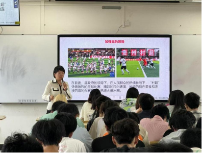 朱彦瑾老师紧扣“《贵州省情》课讲好‘乡村振兴’的若干思考”,聚焦贵州“村超”的经典案例,引导学生把握“村超”火爆出圈的密码:一是加强党的领导,实行“村超行动三步走”战略;二是充分应用数智技术,创新性地提出“三新农”理念;三是推动“超能经济”全面发展。通过案例分析,引导学生贯彻落实习近平总书记关于贵州“要深化文旅体融合,丰富旅游业态,打造‘多彩贵州’文旅新品牌”的讲话精神,激励大学生磨练才干、积蓄力量,将爱祖国与爱家乡结合起来,打造更多像“村超”一样的贵州文旅新品牌,为建设家乡贡献力量!