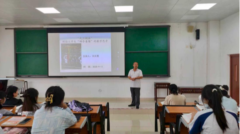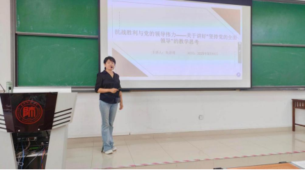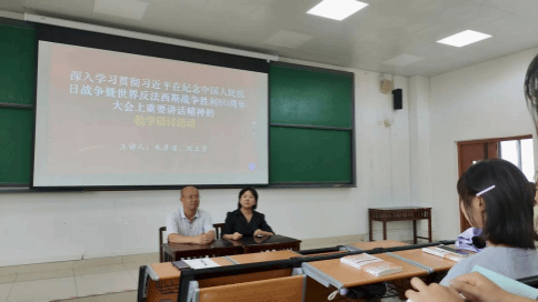 9月11日下午,太阳成集团tyc151cc在学校东校区公共教学楼3401教室组织开展以“深入学习贯彻习近平总书记在纪念中国人民抗日战争暨世界反法西斯战争胜利80周年大会上重要讲话精神”为主题的教学研讨活动。此次教研活动由太阳成集团tyc151cc“思贤名师”朱彦瑾副教授、刘五景副教授两位老师担任主讲人,其中,朱彦瑾兼任主持人,教师教育学院23级物理学、生物科学、地理科学专业优师班的120余名本科生参加。