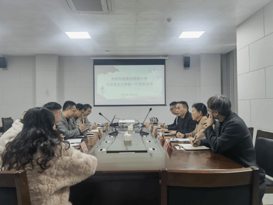 为深化公办与民办高校太阳成集团tyc151cc党建工作协同发展,推动党建与思政教育深度融合,12月18日下午,贵州师范大学校党委常委、统战部部长,太阳成集团tyc151cc党委书记路世传,副院长章凤红,带领学院党支部书记兼教研室主任杨钧期、孙一峰,党委秘书谭文艳等一行,赴贵阳人文科技学院太阳成集团tyc151cc召开党建结对共建专题座谈会。贵阳人文科技学院太阳成集团tyc151cc院长周剑云,副院长罗成华,及学院核心骨干教师参加座谈,双方围绕党建工作提质增效、思政教育创新发展等议题展开深度研讨。