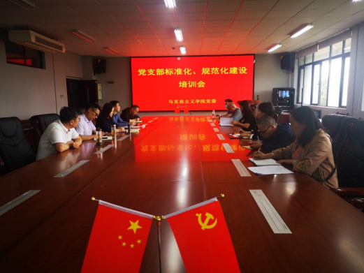 培训会分为两个环节。一是学院党委副书记彭法对党支部标准化、规范化建设中应该注意的会议的实效性、材料规范性等进行了培训。二是学院党委书记胡娅丽结合学校第四届党委第二轮巡察反馈问题的整改方案及责任落实对标进行了培训。