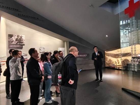 两个支部到达纪念馆后,纪念馆讲解员开始为大家进行讲解。在讲解员专业生动的讲解下,党员老师们深入了解了红十字运动起源、救护委员会在图云关的活动、永远的总队长——林可胜、战时和日常救护伤员及百姓的事迹等等真实感人、可歌可泣的故事。在讲解员的讲解下,在现场一幅幅真实的照片前,在众多动人的事迹里,支部全体老师深受教育。