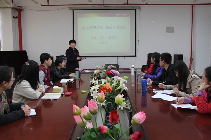 根据学院党的群众路线教育实践活动的整体安排,为加强学院党建工作,特别是进一步搞好发展党员工作,4月9日上午在学院会议室,党总支书记杨文武给研究生和部分青年教师上题为“坚定理想信念,端正入党动机”的党课。