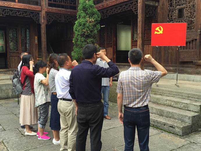 在考察猴场会议会址期间,支部党员围绕长征精神及其共产党员的理想信念,怎么样处理公私、义利关系,如何营造“两学一做”的学习氛围等问题发表了自己的看法,且进行了热烈地讨论。为牢记党员职责、提高党性修养,党员们还在鲜红的党旗下重温入党誓词。党员们掷地有声的誓言昭示了他们对党的教育事业的赤诚之心和责任担当。