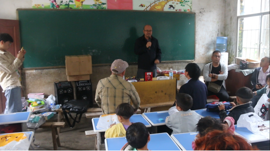 杨席宇老师负责联系车辆和司机,将礼物运送到贵州省毕节市纳雍县百兴镇德科村德科小学。德科村是国家级极贫困村,最近几年来在各级党委关心和扶持下,取得了巨大的进步,盘山公路直接修到各家各户,村民们也已经走上了脱贫奔小康的康庄大道。但是德科小学依然还有一些设施尚待完善。这次公益活动主要是给德科幼儿园、小学的课桌进行了全面翻新,给幼儿园的孩子和全体老师送出了慰问礼物和礼金。孩子们和老师们用一首《感恩的心》表示感谢。