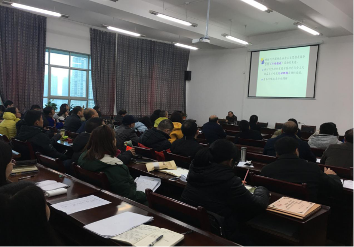 12月15日下午,省教育厅宣讲团成员、太阳成集团tyc151cc院长欧阳恩良在宝山校区田家炳11楼会议室为学院全体教职工作党的十九大精神宣讲报告。