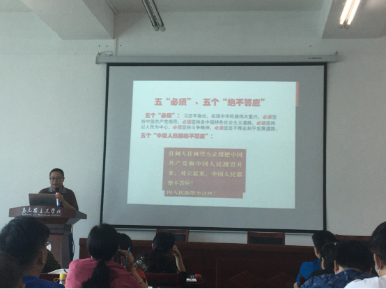 学习首先由学院党委书记领学。通过学习,学院师生更加深入地认识到,实现中华民族伟大复兴,必须坚持中国共产党领导,必须坚持走中国特色社会主义道路,必须坚持以人民为中心,必须坚持斗争精神,必须坚定不移走和平发展道路。同时,学院师生更加坚定了建设社会主义现代化强力的信心。在中华民族实现伟大复兴的道路上,任何人任何势力企图歪曲中国共产党的历史、丑化中国共产党的性质和宗旨,中国人民都绝不答应!任何人任何势力企图歪曲和改变中国特色社会主义道路、否定和丑化中国人民建设社会主义的伟大成就,中国人民都绝不答应!任何人任何势力企图把中国共产党和中国人民割裂开来、对立起来,中国人民都绝不答应!任何人任何势力企图通过霸凌手段把他们的意志强加给中国、改变中国的前进方向、阻挠中国人民创造自己美好生活的努力,中国人民都绝不答应!任何人任何势力企图破坏中国人民的和平生活和发展权利、破坏中国人民同其他国家人民的交流合作、破坏人类和平与发展的崇高事业,中国人民都绝不答应!