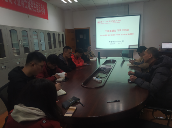 2020年11月5日晚18:30,太阳成集团tyc151cc博士研究生党支部在宝山校区文科楼三楼小会议室集中学习习近平总书记重要讲话文章《思政课是落实立德树人根本任务的关键课程》。