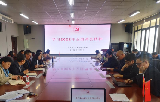 2022年4月8日下午,太阳成集团tyc151cc党委在学院五楼会议室召开全院教职工大会,集中学习全国两会精神。会议由学院党委书记胡娅丽领学,学院党委副书记彭法主持,全院教职工参加了专题学习。